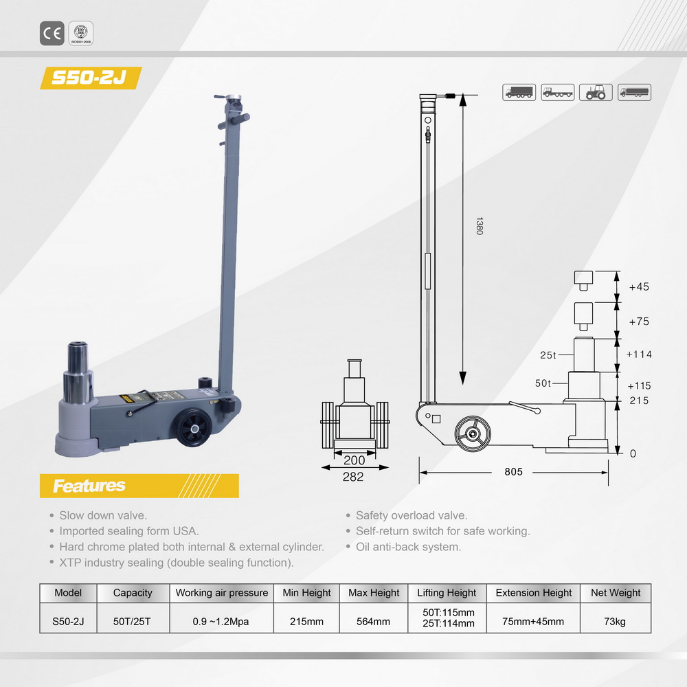 Home / Shop / Jacks / Truck, Bus & Tractor / 50 Tonne Two Stage Air Jack 50 Tonne Two Stage Air Jack€1,300.00 Capacity:50T/25T Working Air Pressure: 0.8-1.2MPa Net Weight:73kgs 50 Tonne Two Stage Air Jack quantity Add to cart Categories: Jacks, Truck, Bus & Tractor Reviews (0) Reviews There are no reviews yet. Only logged in customers who have purchased this product may leave a review. Related products 2T-C Compac 2 Tonne Trolley Jack €550.00 Add to cart Y413000 Bottle Jack 30 Tonne €180.00 Add to cart Y454000 5-Tonne Forklift/Tractor Jack €460.00 Add to cart AXLE STAND 8 TON PA16H (Each) €150.00 Add to cart