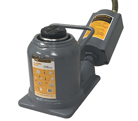 Low Profile Jack with a 20 Ton capacity. This unit includes a welded base to prolong service. Chrome main ram and aluminum air motor guarantee optimum lifetime. Air filter and air regulator connected to hose, included.